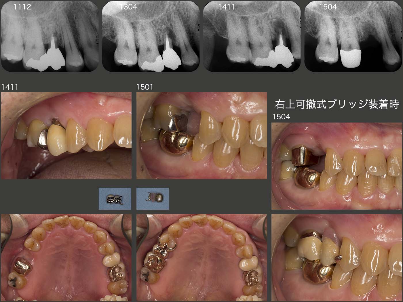 右上5の補綴に関しては,右上4がバージントゥースであることから,切削せず,右上6にコーヌス冠を用いた可撤式のブリッジを製作した.