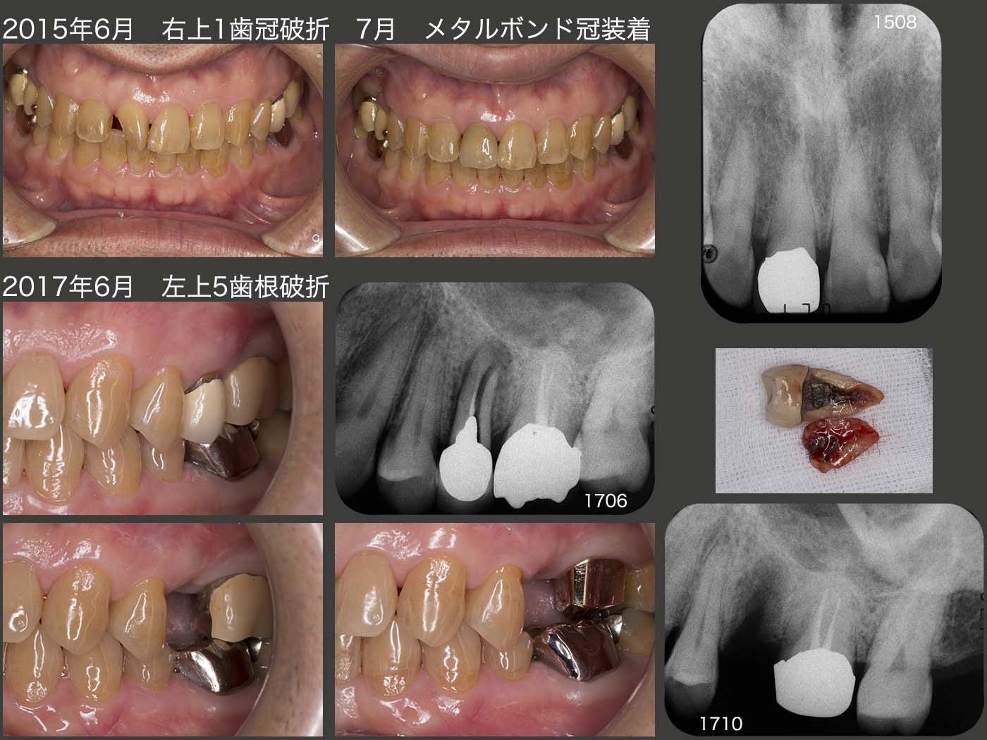 2015年6月,間違って箸を強く咬んでしまったことで,右上1に歯冠破折が生じ,7月にメタルボンド冠を装着した.