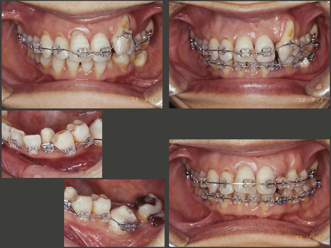 また12月にかけて,左上2の唇側移動,左下3,4,5の叢生の解消および頰側傾斜埋入された左下6のアップライトの目的で歯科矯正を行った.なお,左下3は歯冠幅径を小さくする必要から抜髄せざるを得なかった.