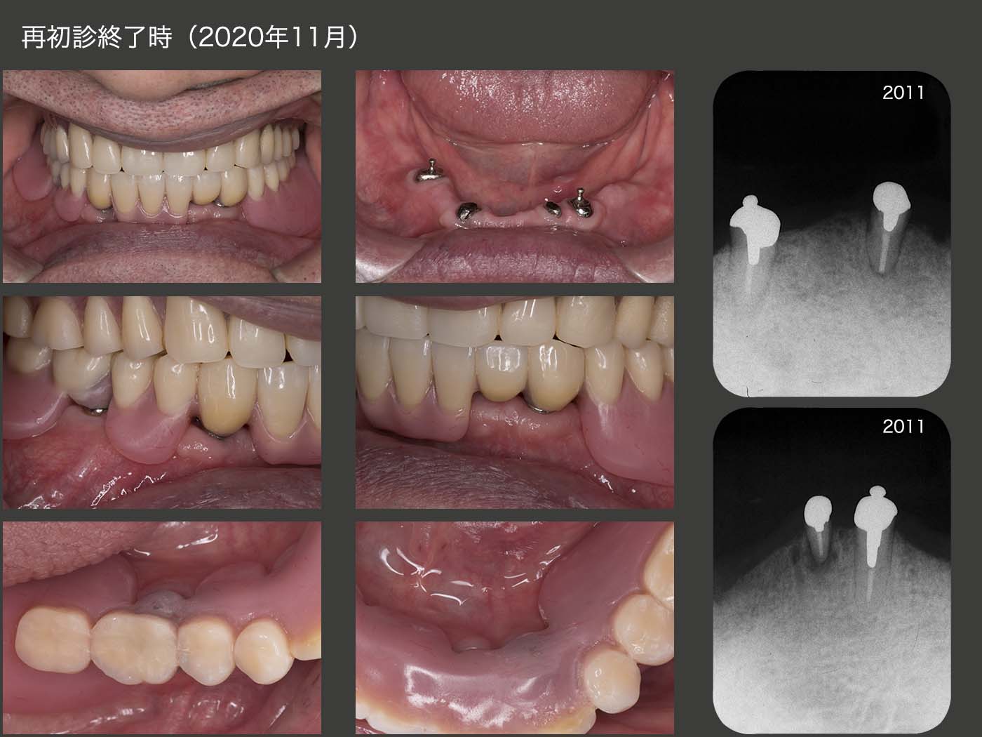 スライドに掲載していないが,2018年3月,根面カリエスにて右下5のアタッチメントを作り直した.他の残存歯にも根面カリエスが認められた.患者さんは,よく飴を舐めていたとのことで,可能な限りやめて頂くようにお願いし,経過を観察することした.