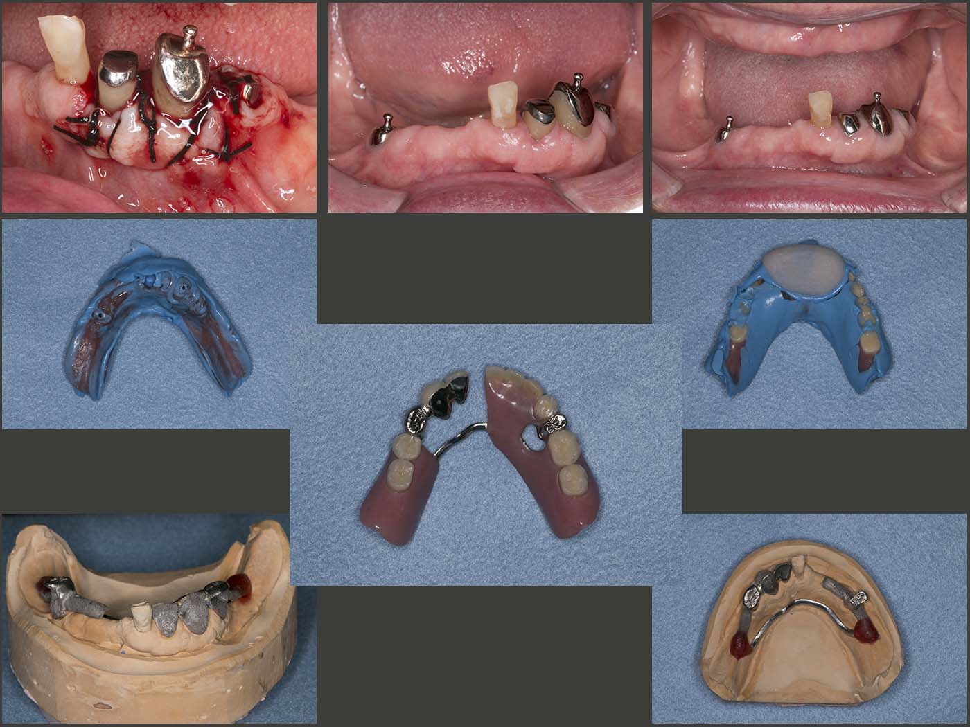 患者さんに私の不手際を詫び,左下2,3の歯冠長延長術を行う許しを得た.さらに,支台歯辺縁歯肉の開放を提示させて頂いた.この症例は,デンチャースペースが十分とれないため,上部構造体は歯冠型とし,義歯床とはラグで固定した.