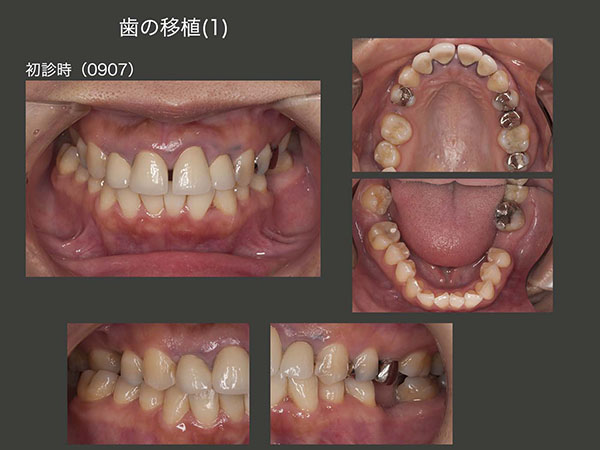 2009年11月,機能していない右上7を抜歯し,左下6部に移植した.隣在歯の右上7が移動したため,近心傾斜している右上6のアップライトが可能となり,出来上がったスペースに,やはり非機能歯である右下8を移植した.この際,ドナー歯(大臼歯)が,顎堤(受容側・小臼歯部))より大きかったので,骨片を挿入し血餅の保持に努めた.(今なら,頰側骨の拡大を行うが,当時は手技が未熟であった.)