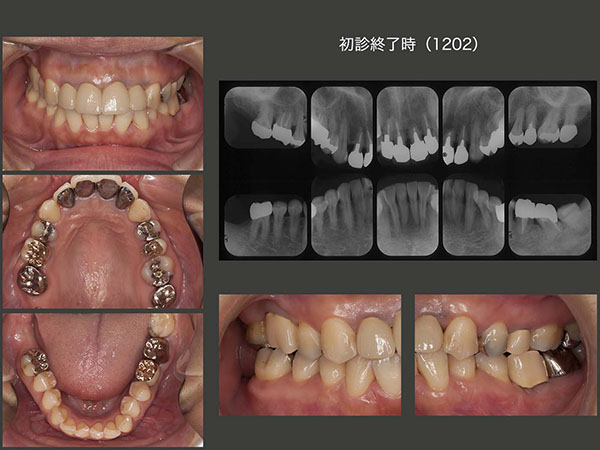 2009年7月初診,38歳女性.右上および左下の欠損の治療ならびに前歯の隙間が気になるという主訴で来院.上顎前歯は10年前イタリア留学中に製作したとのこと.全体に軽度の歯周病がみられた.特に左下7の遠心に10mmの歯周ポケットあり,この結果左下⑤6⑦のブリッジは難しいと判断した.