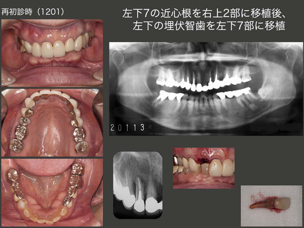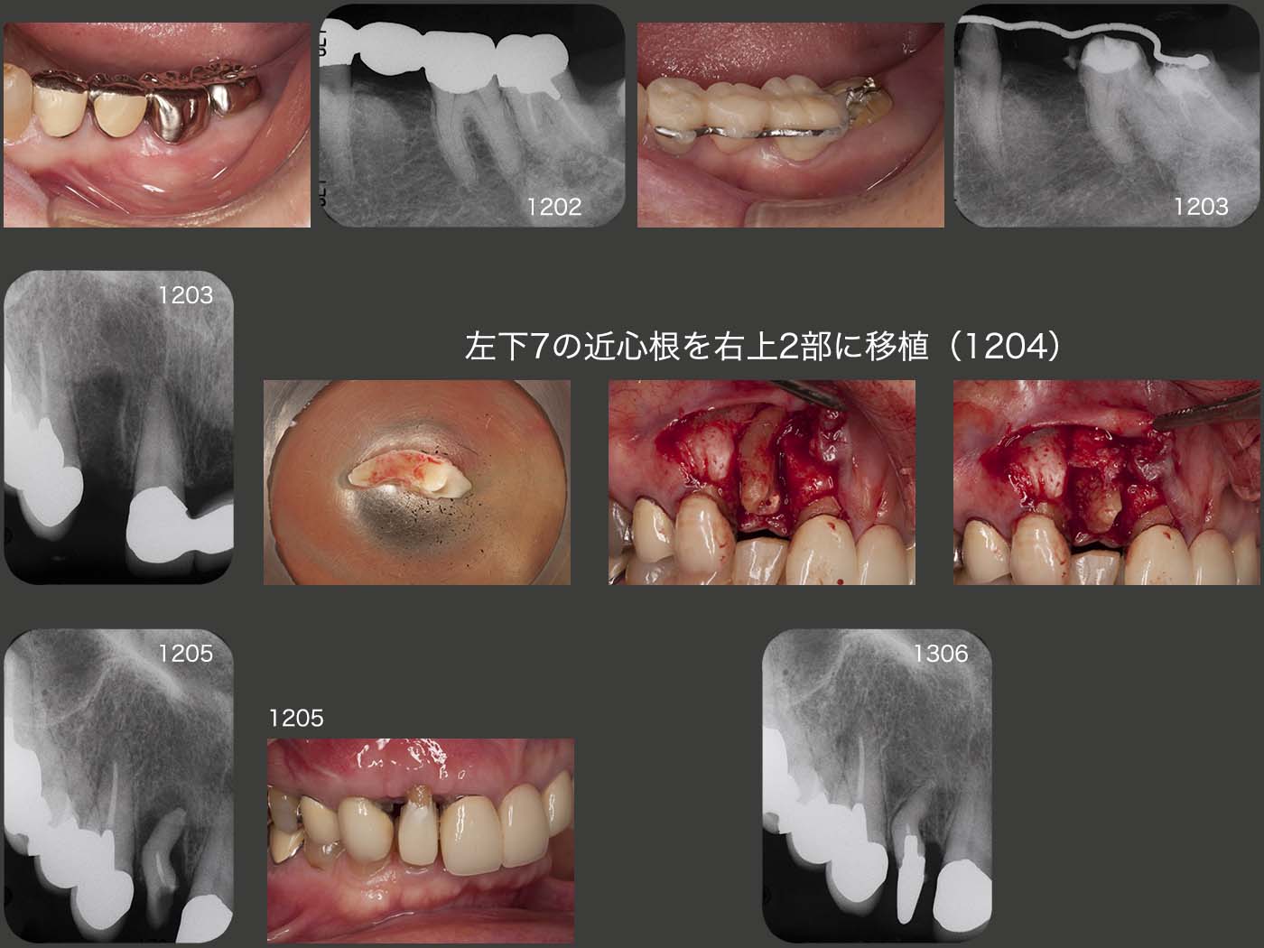 2.左下7の近心根を右上2部に移植後、左下の埋伏智歯を左下7部に移植