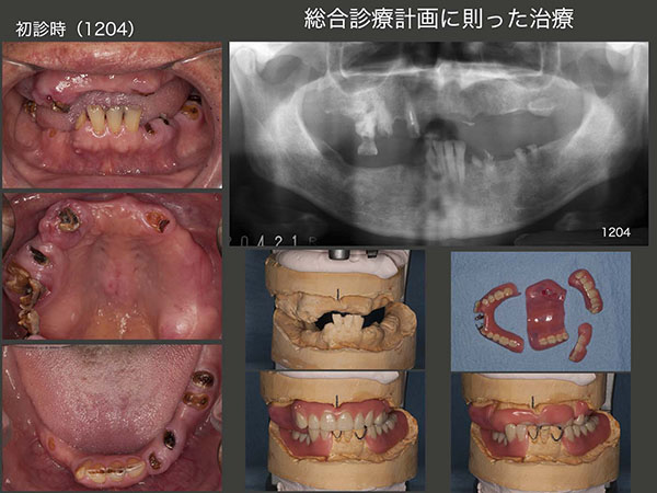 2012年4月初診,64歳男性.主訴は,義歯を製作して欲しい.子供の頃のトラウマがあり,25歳から1回も歯医者に通ったことがないとのこと.もちろん義歯を入れた経験はなく,柔らかい食べ物を顎堤で咬んでいたとのこと.